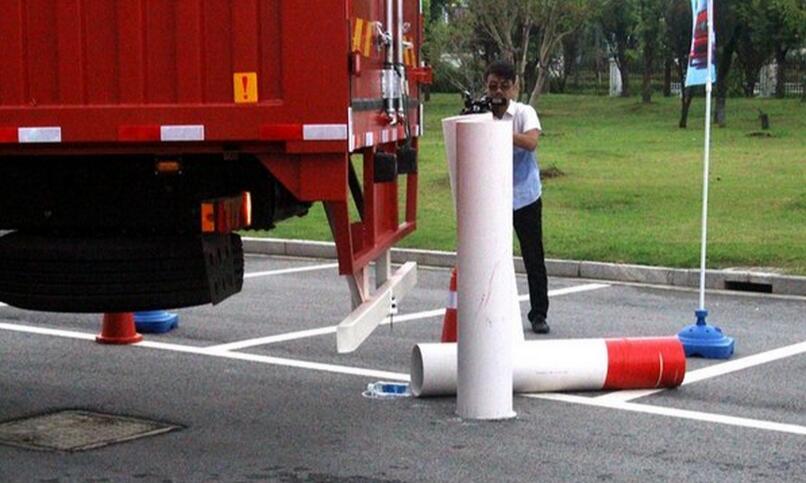 精準精準碰樁,選手將車輛倒入車庫指定位置,並用車廂後端完全碰撞紅色交通樁,且不能碰到兩(liang) 邊的藍色樁。當選手撞到紅色樁後鳴笛。