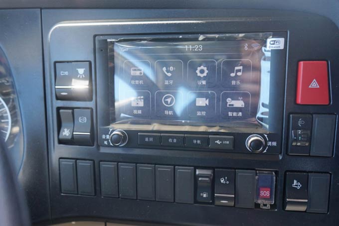 當然長途漫漫,娛樂(le) 休閑配置不能少。重汽豪瀚N5W配備了5英寸多媒體(ti) 屏幕,融合智能通、視頻監控、導航、音樂(le) 、藍牙、收音機等多功能,讓旅途不寂寞。